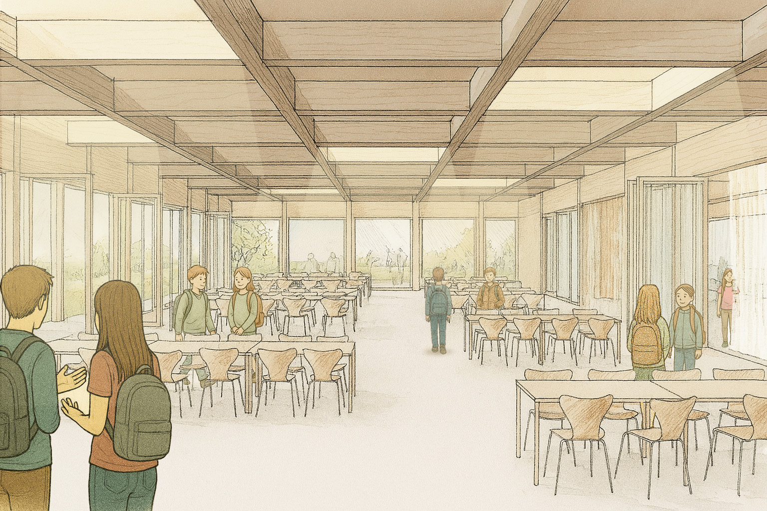 So entsteht ein Gebäude, das Architektur, Pädagogik und Landschaft zu einer selbstverständlichen Einheit verbindet – vertraut im Maßstab, zeitgemäß in seiner Haltung.